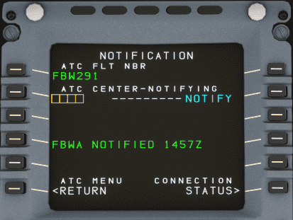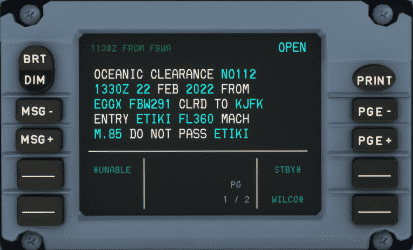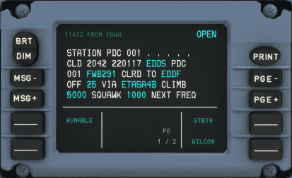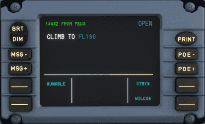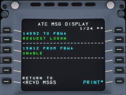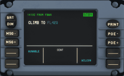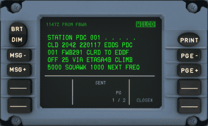 The ATC controller can send instructions to the pilot at any time. Most of the instructions or requests require an answer from the pilot via the buttons on the DCDU.