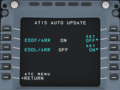 You can choose to update ATIS information automatically by pressing the LSK R4 AUTO UPDATEand then configure the auto-updates on the next page.