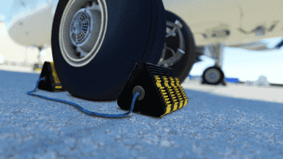 This page details the safety equipment available when parked with the A32NX. Other than just looking gorgeous, the wheel chocks even apply some braking force to hold the aircraft in place.