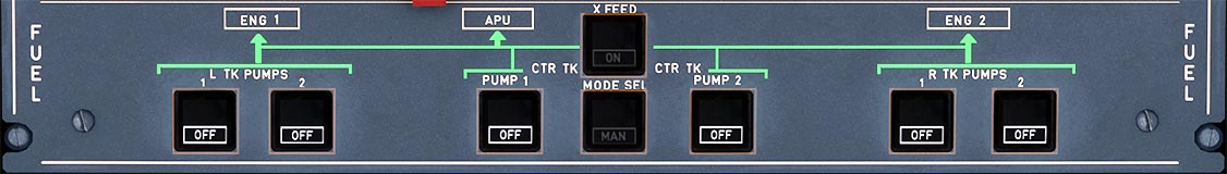 • Manual control of center tank valve to inner tanks with center tank pumps button switches.