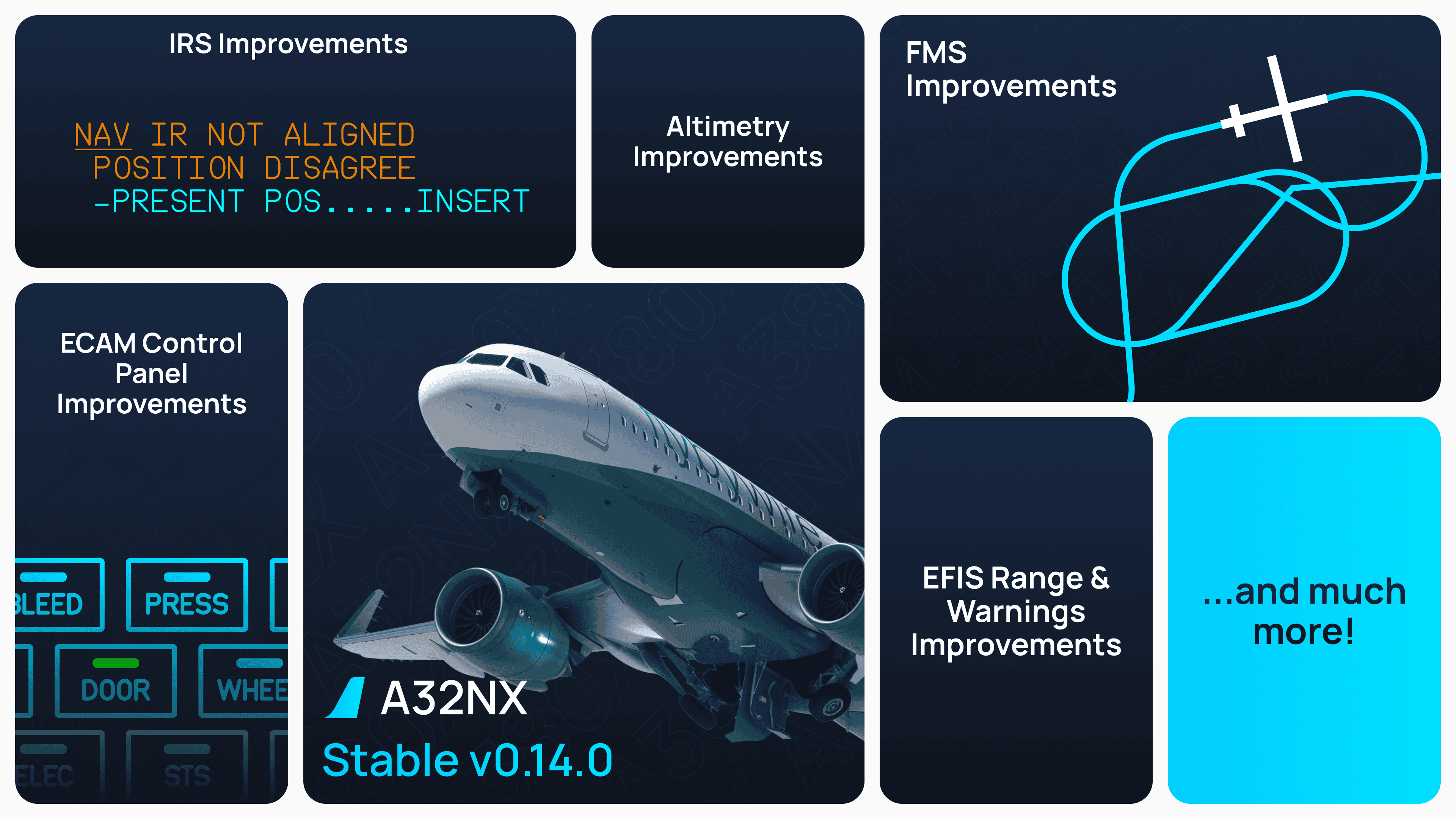 - [A32NX/FWC] Added IRS alignment related faults and improved accuracy of time to align logic - @tracernz (Mike)