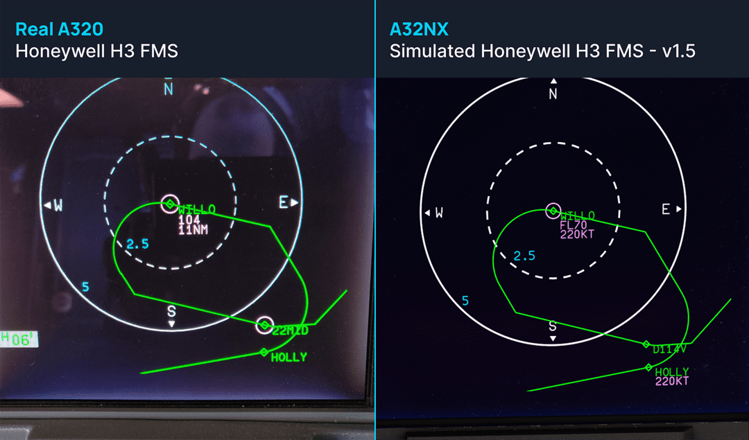 We have completed major improvements to the LNAV portion of the custom FMS. This in turn allows the FMS to have full authority on drawing the flight plan. With a wide support for various procedure leg types, the plane should fly paths that are more accurate to real life lateral SID/STAR constraints encoded in the navdata, better flight path prediction, and finally programmable holds!